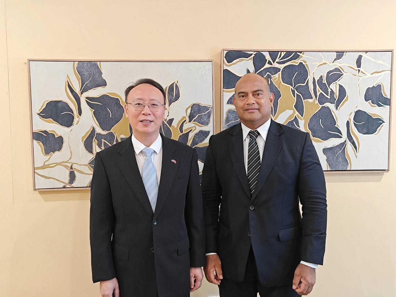 吕进大使会见瑙鲁新任体育、公共卫生、贸易投资和深海采矿部长埃欧伊