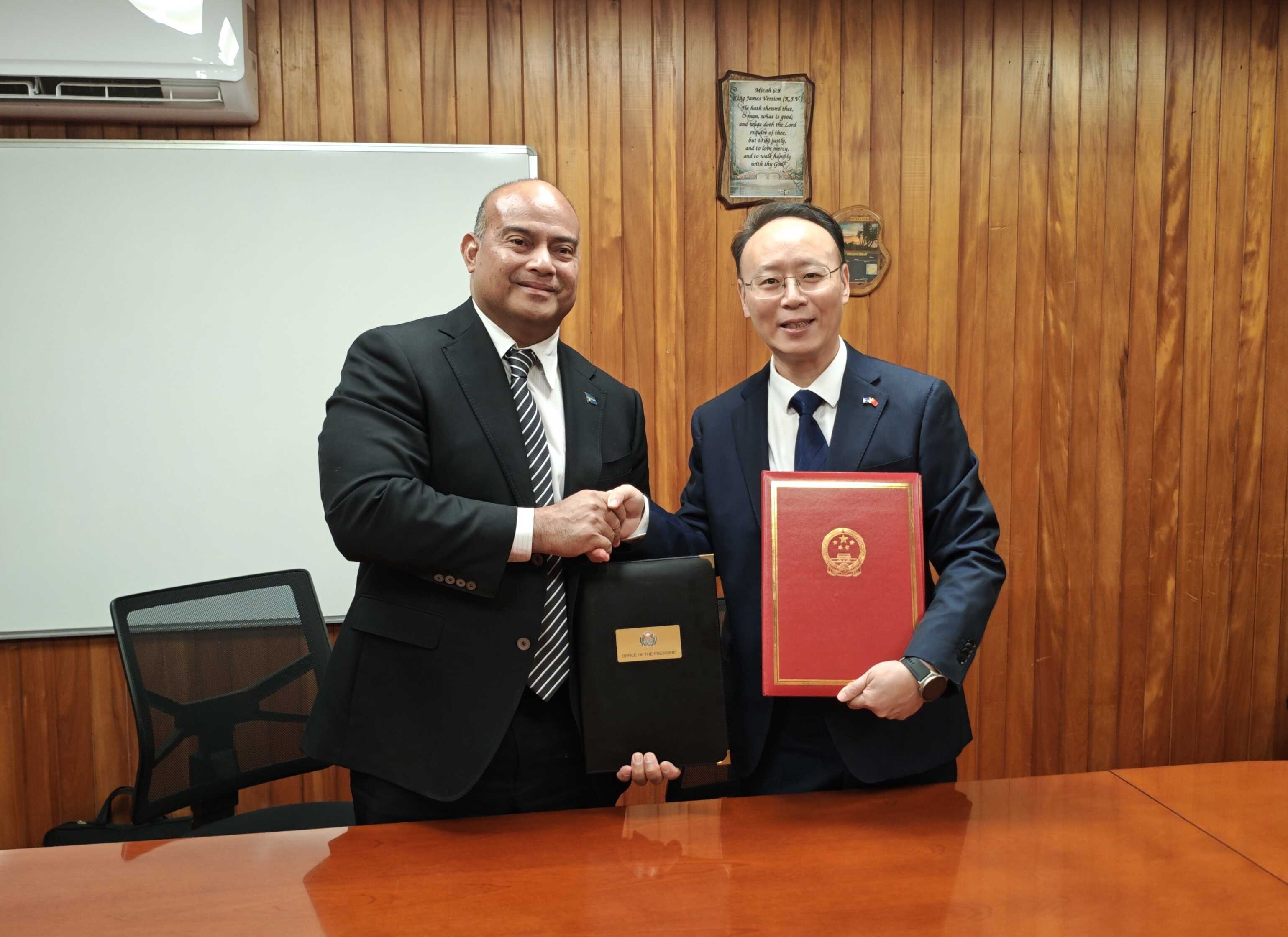 吕进大使与瑙鲁总统阿迪昂签署双边发展合作文件