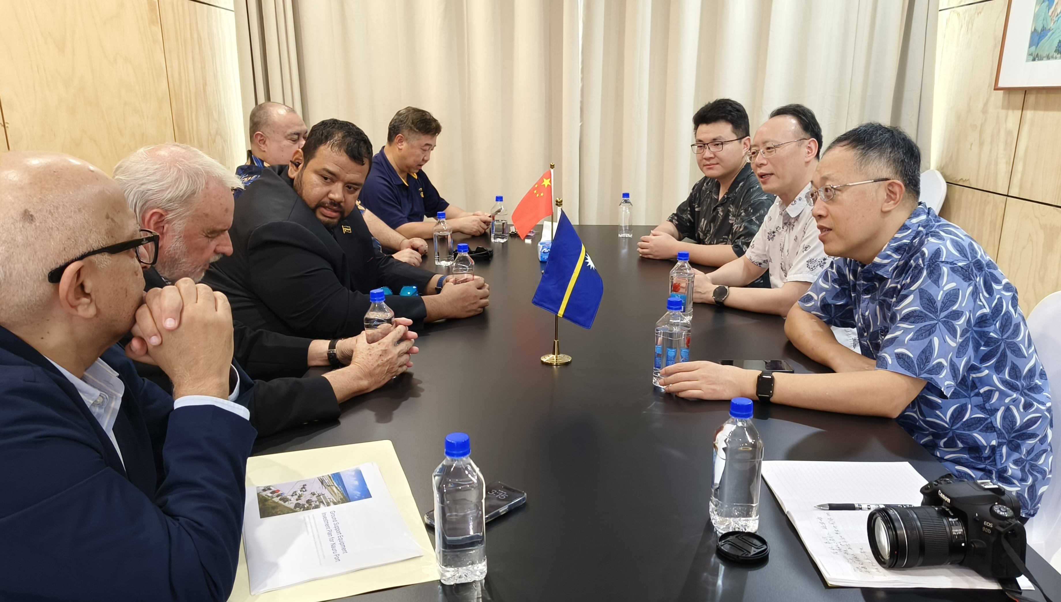 1月30日,驻瑙鲁大使吕进应约会见瑙鲁航空部长阿皮、瑙鲁航空公司董事长德耶及管理团队,双方就深化中瑙航空领域合作深入交换意见。