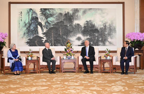 2026年3月25日,中共中央政治局常委、中央书记处书记蔡奇在北京会见柬埔寨国王西哈莫尼和太后莫尼列。