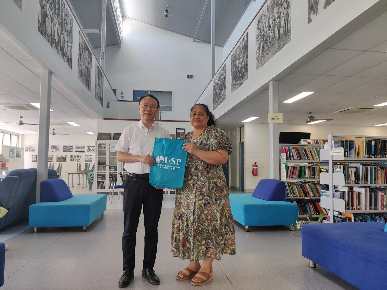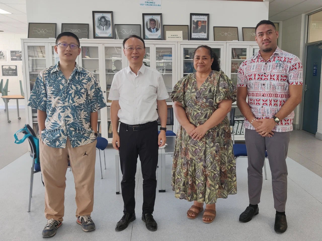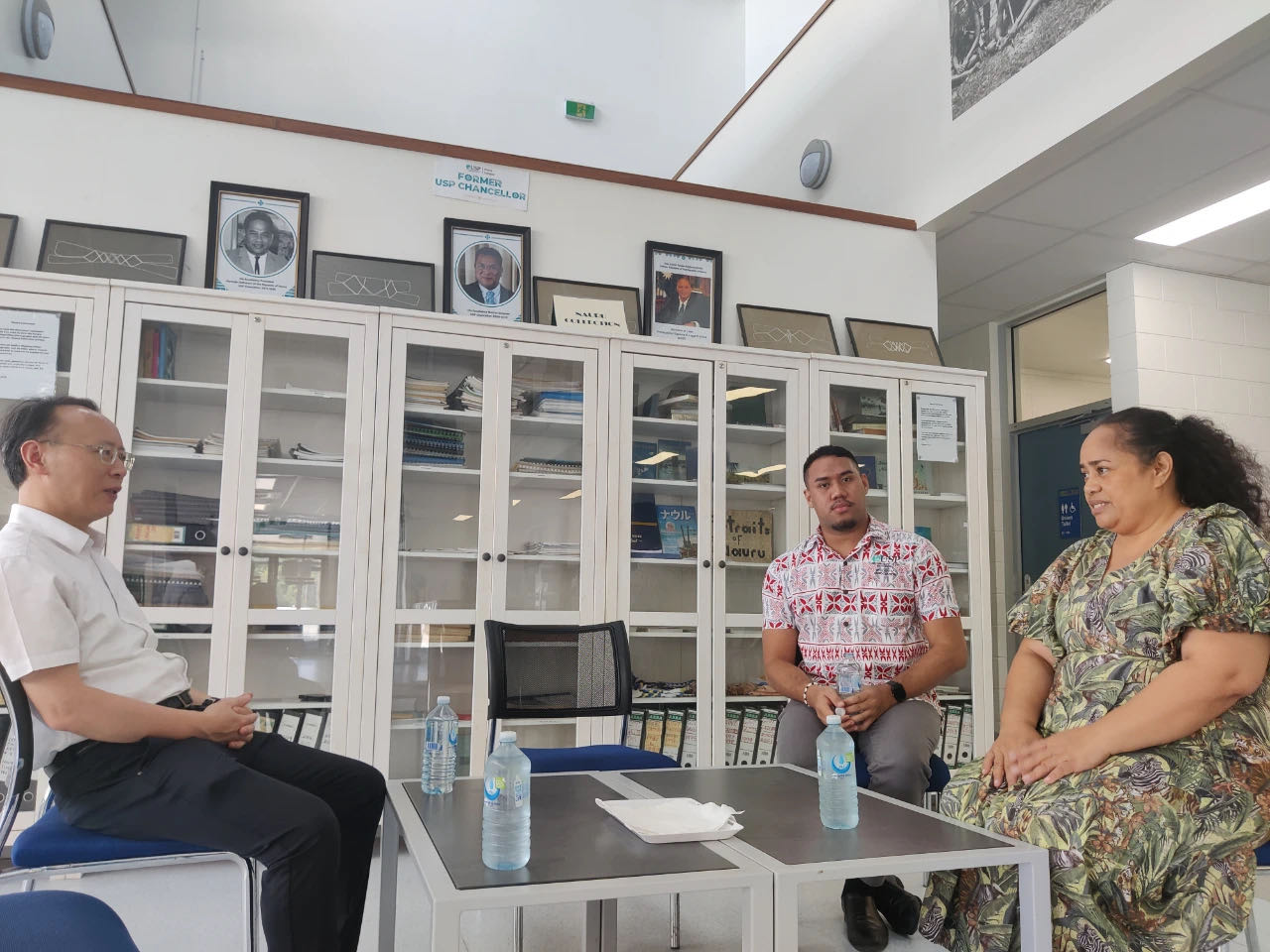 10月24日,驻瑙鲁大使吕进访问南太平洋大学瑙鲁分校,分校校长卡农、主任希尔维亚陪同介绍。