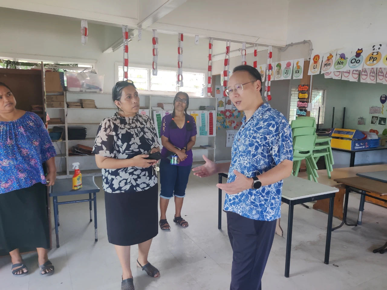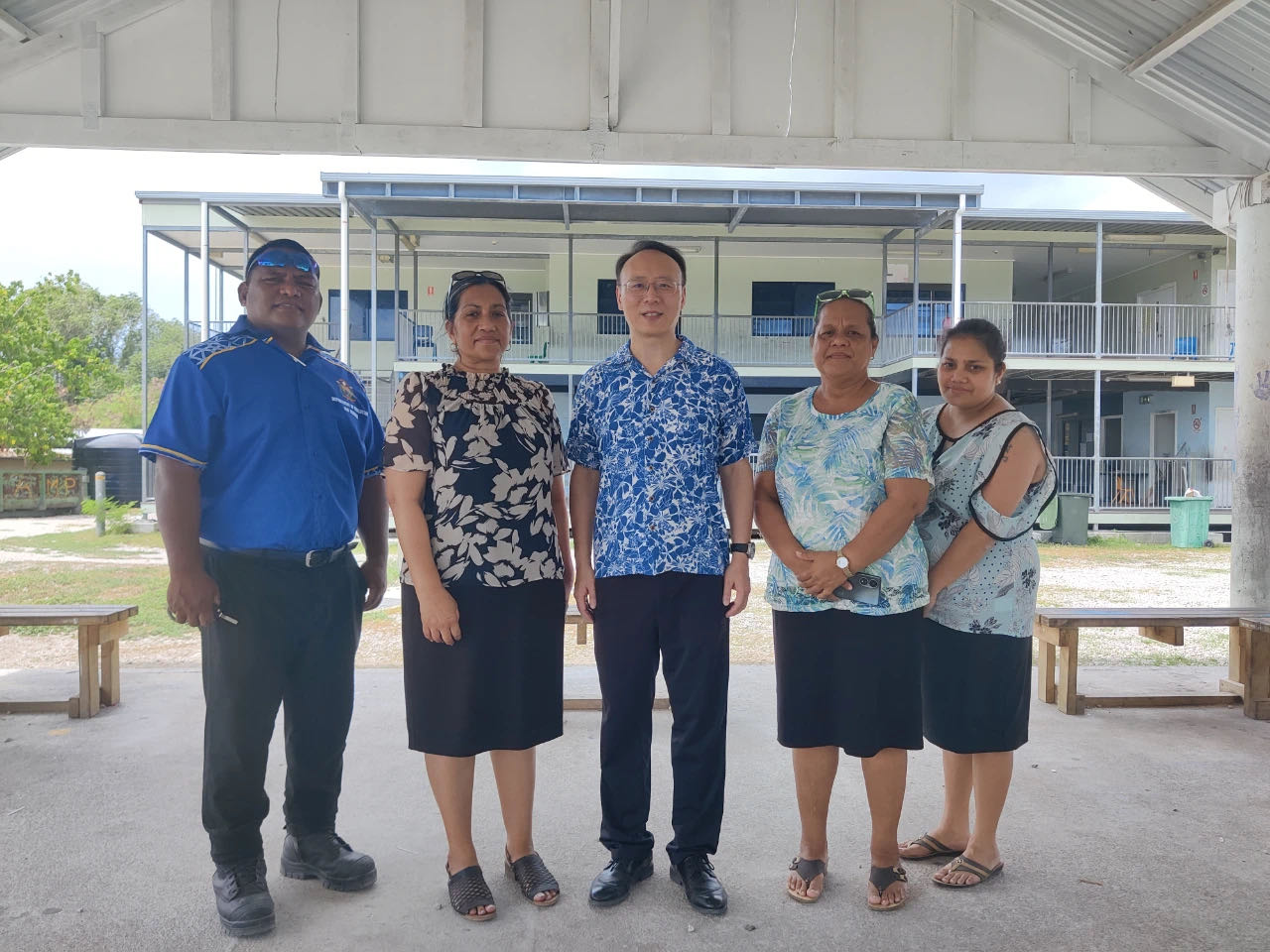 9月27日,驻瑙鲁大使吕进走访考察瑙鲁小学亚伦校区、梅嫩校区,瑙教育部常秘库恩、教育部主管官员及学校领导陪同走访。