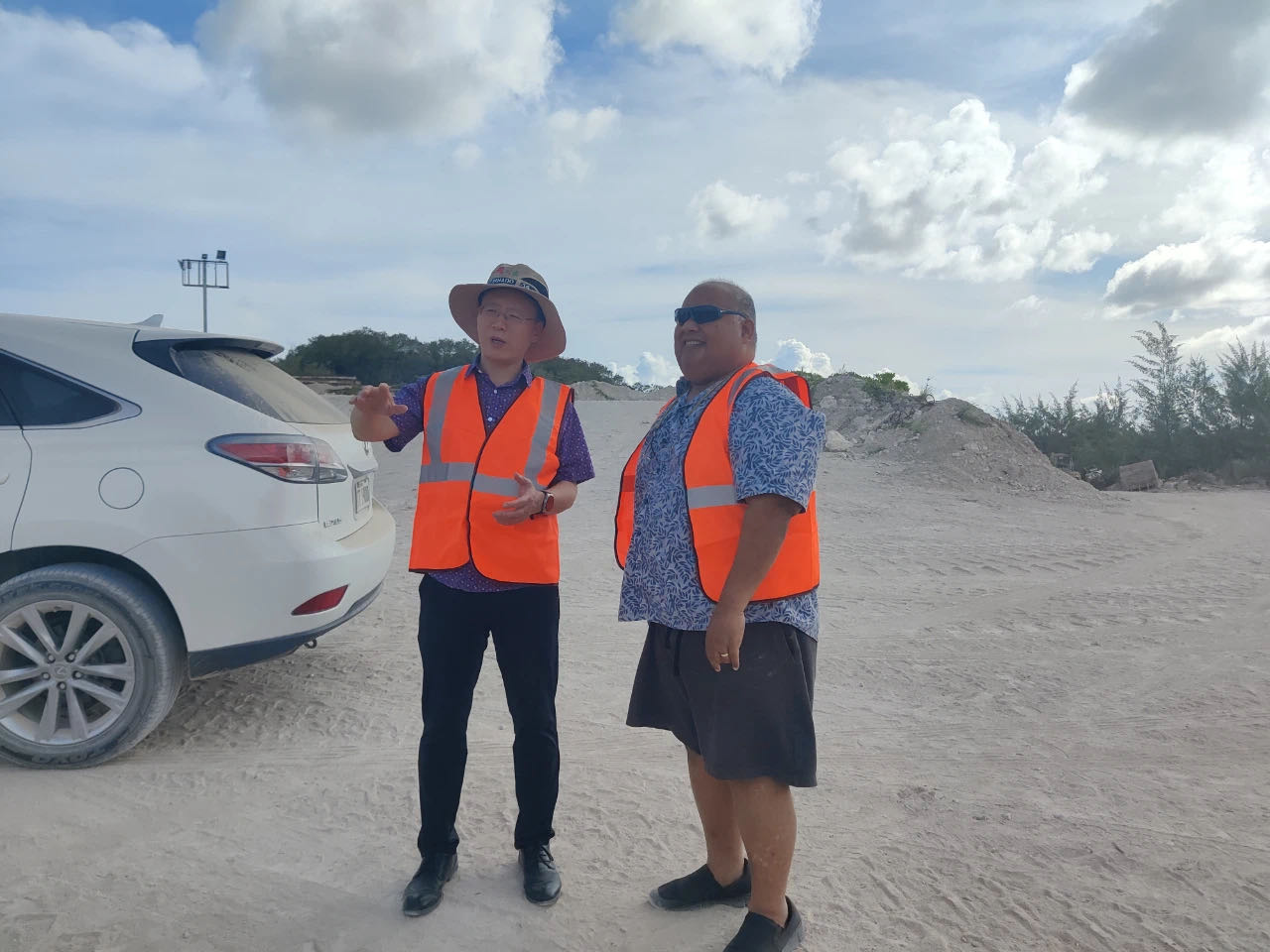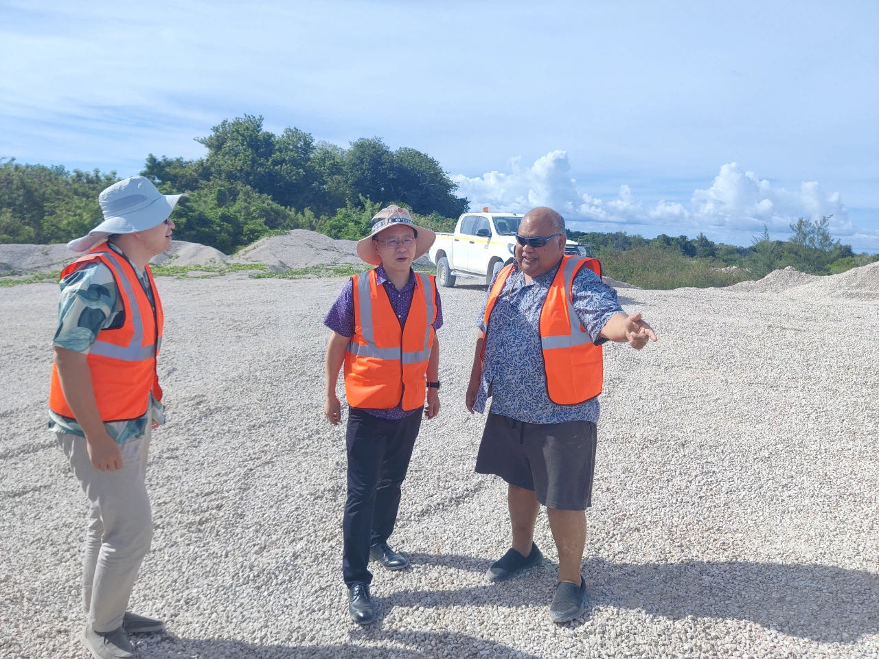 8月9日,驻瑙鲁大使吕进在磷酸盐矿和信息与通信部长沙德洛格·伯尼克陪同下实地考察磷酸盐矿区。