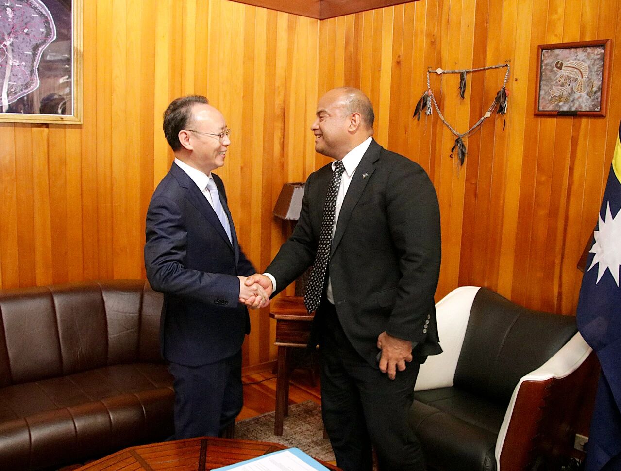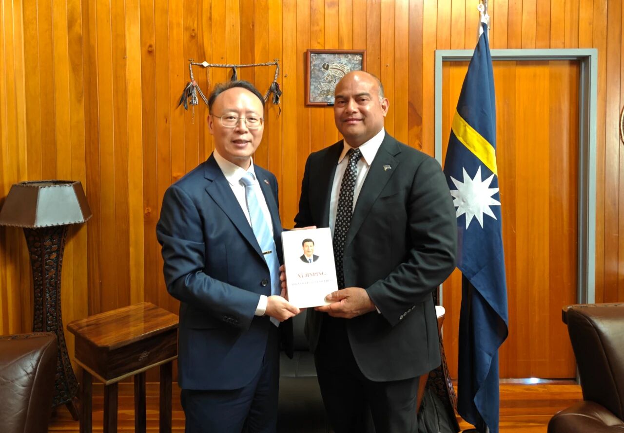 10月23日,驻瑙鲁大使吕进拜会刚刚当选连任的瑙鲁总统阿迪昂,向其赠送《习近平谈治国理政》第五卷(英文版),双方并就双边关系有关问题交换意见。