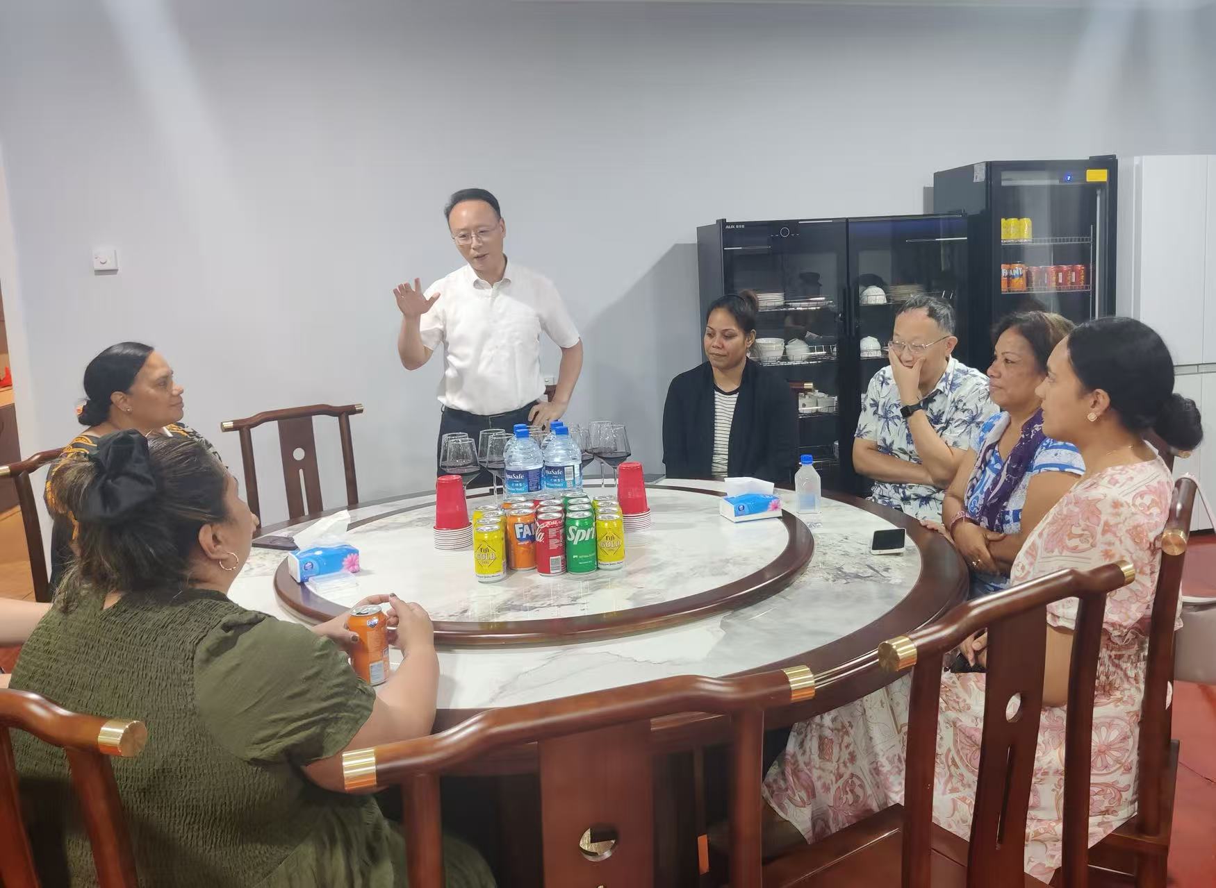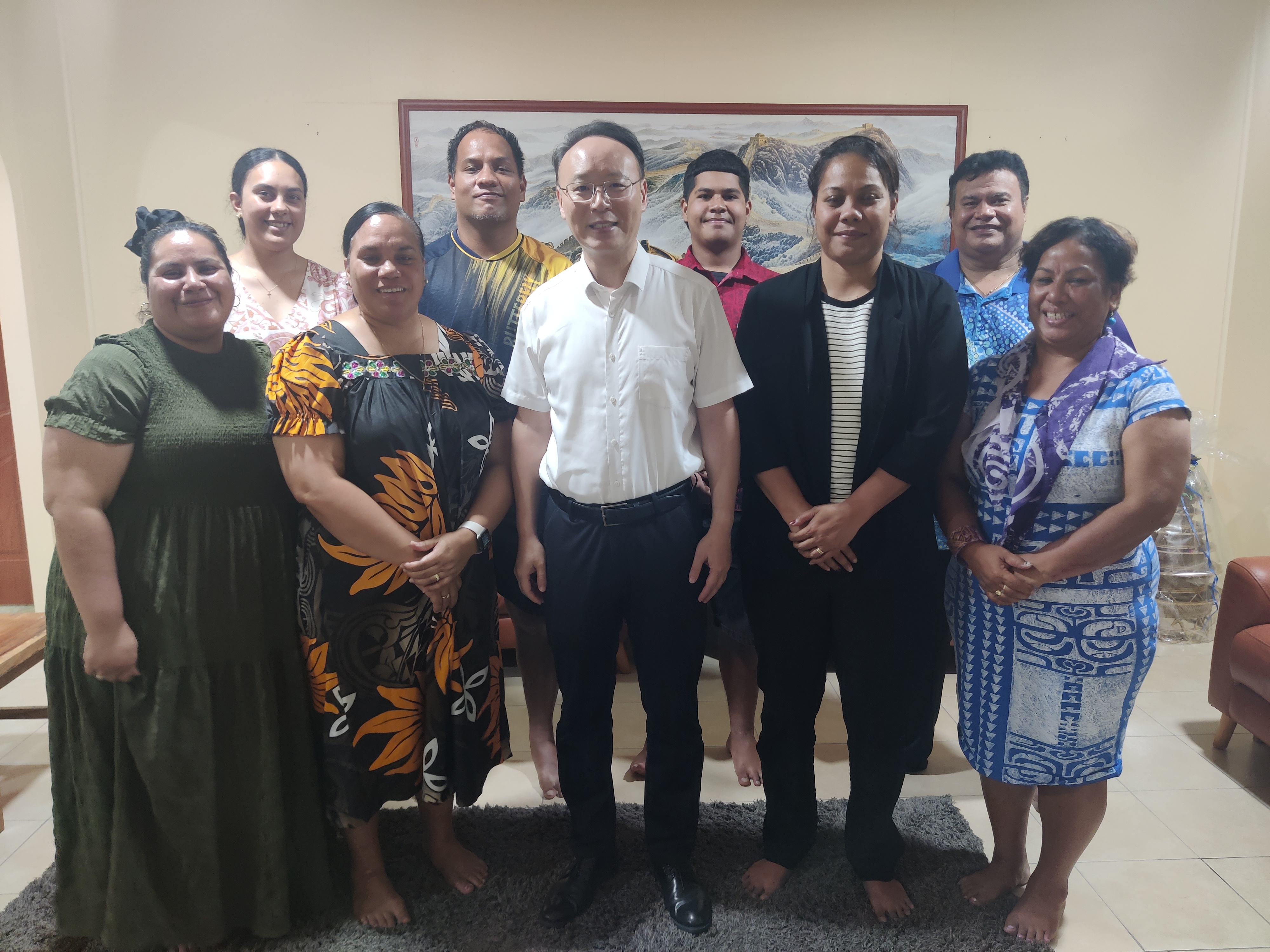 12月23日,驻瑙鲁大使吕进会见赴华参访回国的瑙鲁职业教育部常秘德耶、公共卫生部常秘德特纳莫、瑙航董事长德耶以及各界友好人士访华团其他成员,同大家座谈交流。