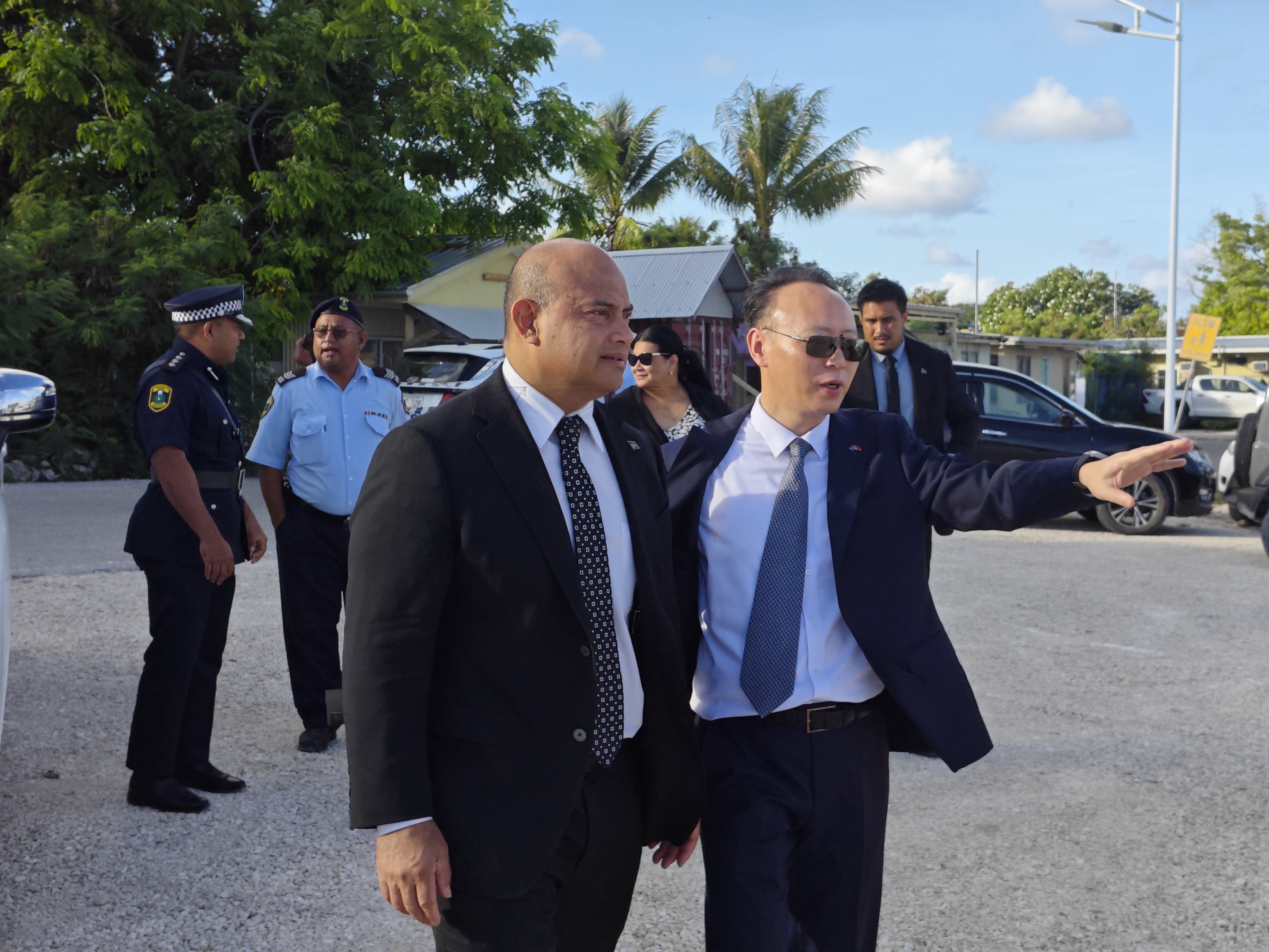 12月24日,驻瑙鲁大使吕进陪同瑙总统阿迪昂、议长斯蒂芬、体育部长杰里迈亚等在岛内阁成员视察中国援瑙体育中心项目。