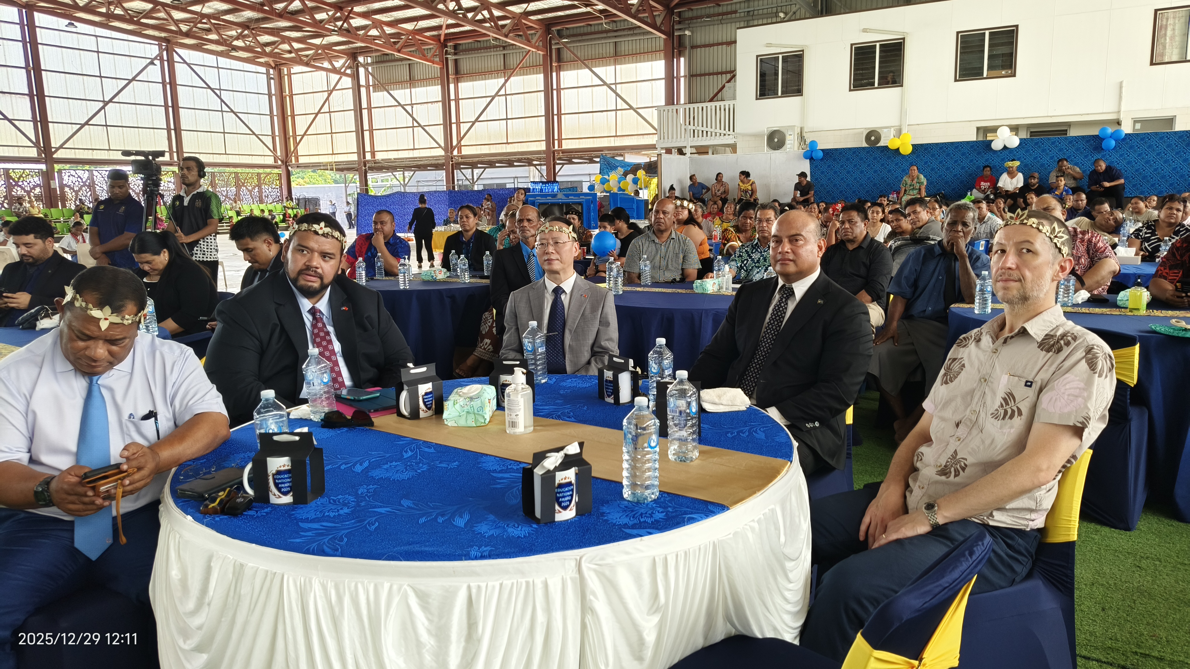 12 月 29 日,驻瑙鲁大使吕进出席瑙“2025 年国家教育奖” 颁奖仪式,与总统阿迪昂、议长斯蒂芬、教育部长阿皮等政要共同为优秀学生颁发奖项。此次活动旨在表彰本年度在出勤、学业、品德等方面表现突出的瑙鲁中小学生。