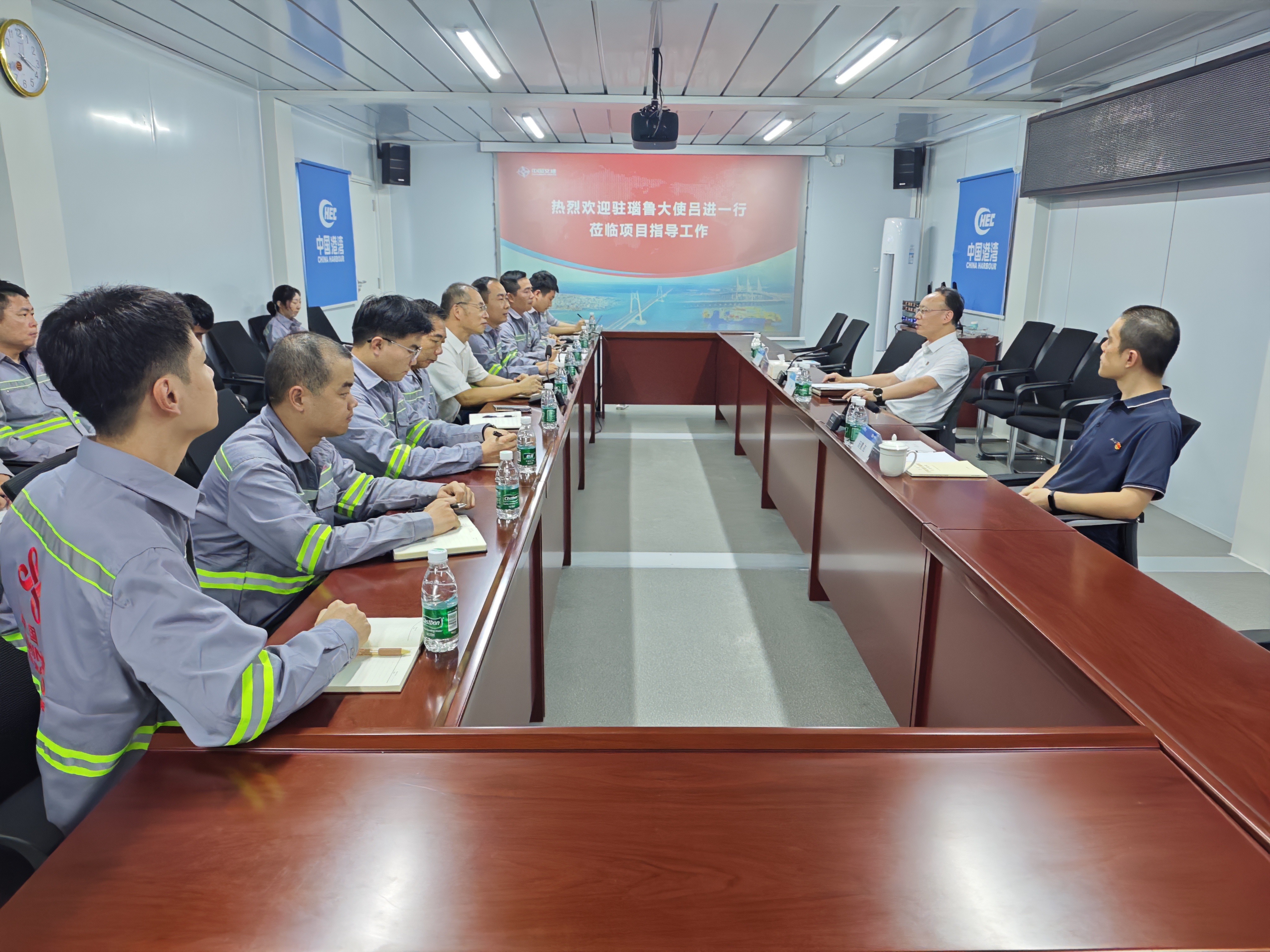 3月25日,驻瑙鲁大使吕进前往援瑙鲁体育中心项目施工现场,实地走访调研项目建设情况,并看望奋战在一线的工人。