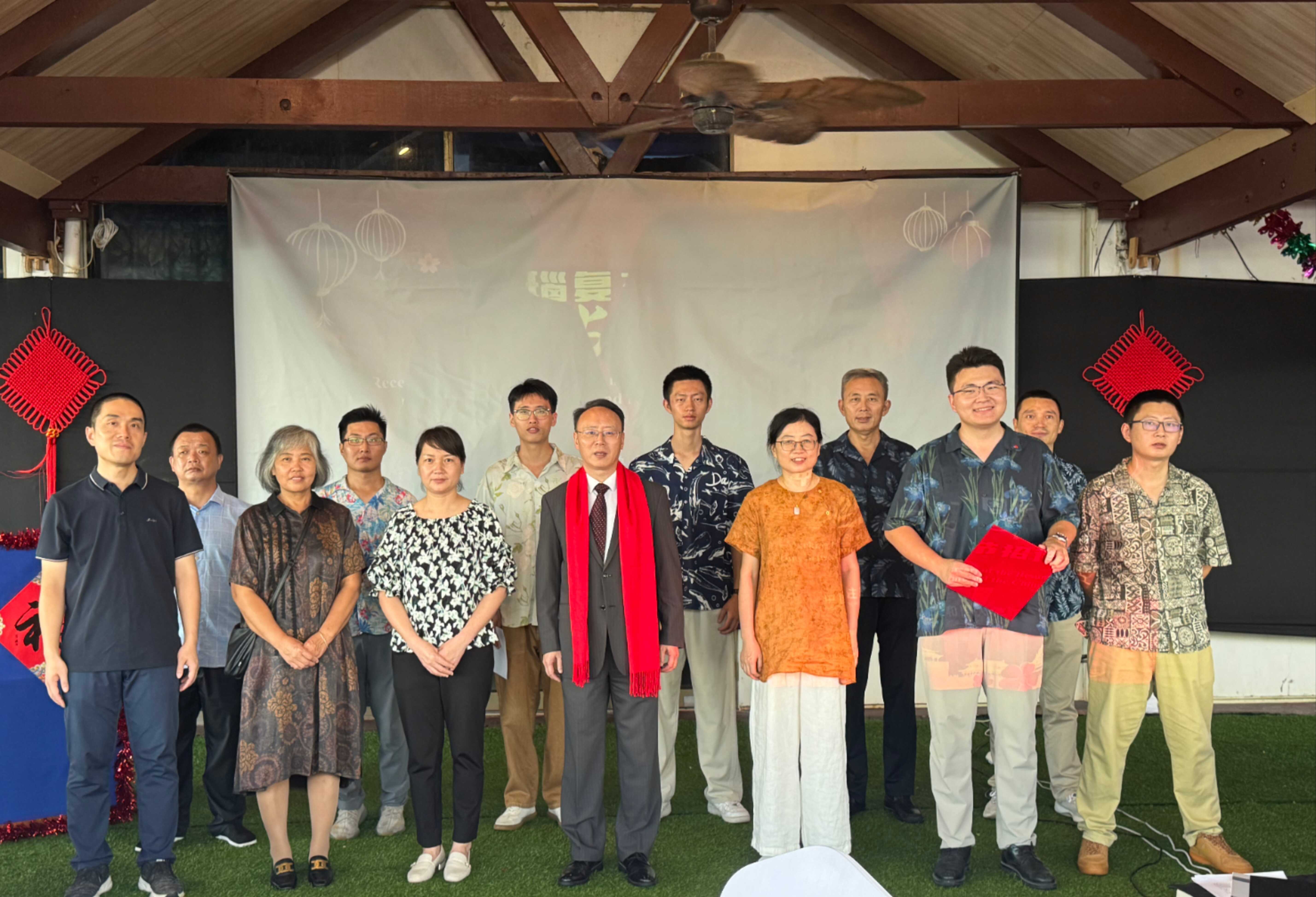 To celebrate the first Spring Festival after the successful application for world heritage status, Spring Festival couplets were pasted, lanterns were hung, red ribbons were hung down from the beams, and cultural and creative products were placed on the exhibition stands at the event site, creating a strong visual impact of "Chinese red" and a strong flavor of the New Year. The documentary on Chinese Spring Festival culture played in a loop showed the long history and profound heritage of the Spring Festival to Chinese and foreign friends, and the carefully produced theme video of the first anniversary of the resumption of diplomatic relations led the guests to comprehensively review the important course of the development of bilateral relations over the past year. The students of Nauru High School brought the chorus "Hope", singing the friendship between the two countries and drawing bursts of cheers. Nauru's Minister of Health, Scotty, Deputy Minister Dagiago and other senior government officials present led all the government officials to sing the Nauru song "Love Unites Us" to wish the Chinese people a happy New Year, winning applause from the whole audience. Overseas Chinese and Chinese-funded institutions sang patriotic songs one after another, expressing their longing for their motherland and hometown. Ambassador Lyu Jin, together with all the staff of the embassy and the overseas Chinese present, sang "My Chinese Heart" and "Ode to the Motherland", reaching a climax of the festive atmosphere.