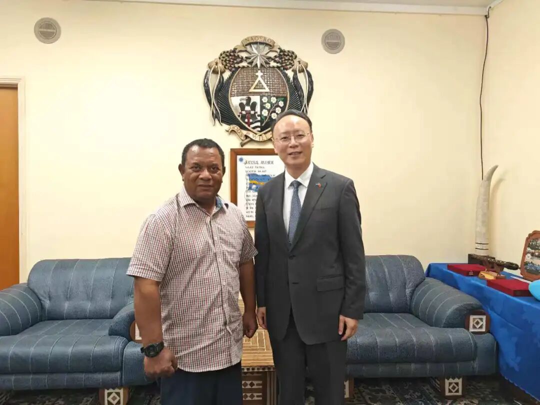 On October 17, Ambassador Lyu Jin paid a courtesy call on Marcus Stephen, the newly elected Speaker of the Parliament of Nauru. The two sides exchanged views on cooperation between the legislative bodies of the two countries and other areas of mutual interest.