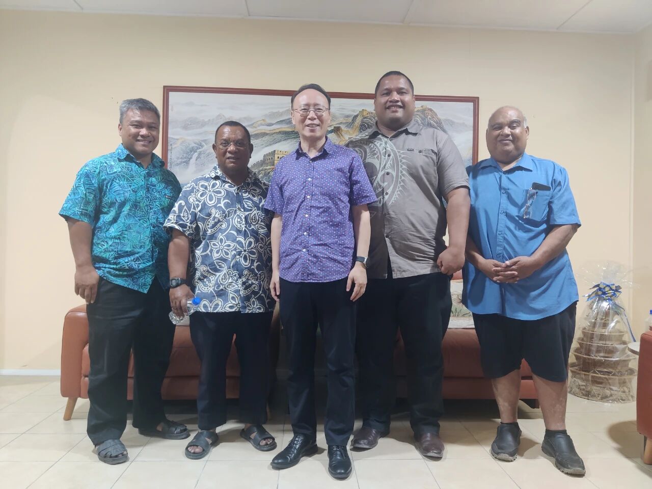 On October 23rd, Ambassador Lyu Jin had a dining talk with Stephen, Speaker of Nauru, along with Bernicke, Minister for Infrastructure, Media and Communications, and Jeremiah, Minister for National Emergency and Sports of Nauru.