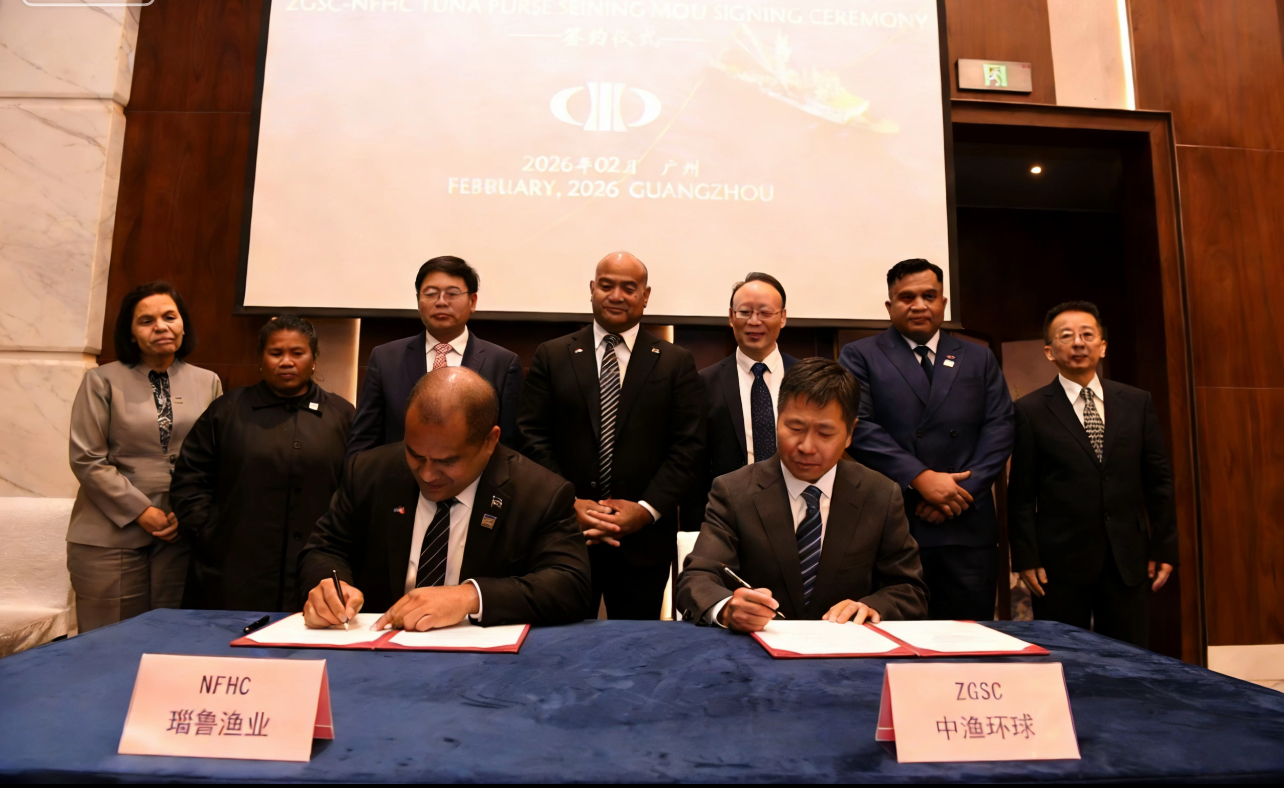 On February 9, Mr. Deng Rongcheng, Chairman of Zhongyu Global Ocean Food Co., Ltd., a subsidiary of China National Agricultural Development Group Co., Ltd., and Mr. Aliklik, Minister for Fisheries of the Republic of Nauru, signed a Memorandum of Cooperation in Guangzhou.