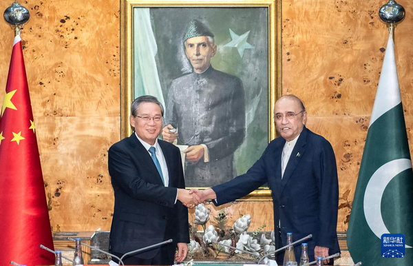 Asif Ali Zardari asked Li Qiang to convey his sincere regards to President Xi Jinping. Asif Ali Zardari said, the Pakistan-China friendship enjoys a long history and is deeply rooted in the hearts of people. No matter how the international landscape may evolve, Pakistan-China relations have always moved forward steadily and scaled new heights. Noting that the Pakistani side firmly abides by the one-China principle, he said Taiwan is an inalienable part of China's territory. Pakistan will, as always, join China in firmly supporting each other on issues regarding their respective core interests. Pakistan is ready to work with China to maintain high-level exchanges, promote the construction of the CPEC, and strengthen cooperation in trade and investment, infrastructure, people-to-people exchanges and other fields, so as to provide more benefits to the two peoples. Pakistan will do its utmost to ensure the safety and security of Chinese citizens, institutions and projects in the country.