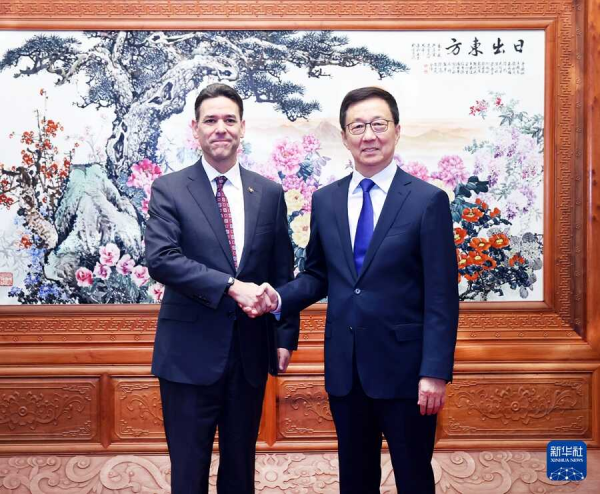 On October 21, 2025, Vice President Han Zheng met in Beijing with President of the Senate of the U.S. State of Oregon Rob Wagner.