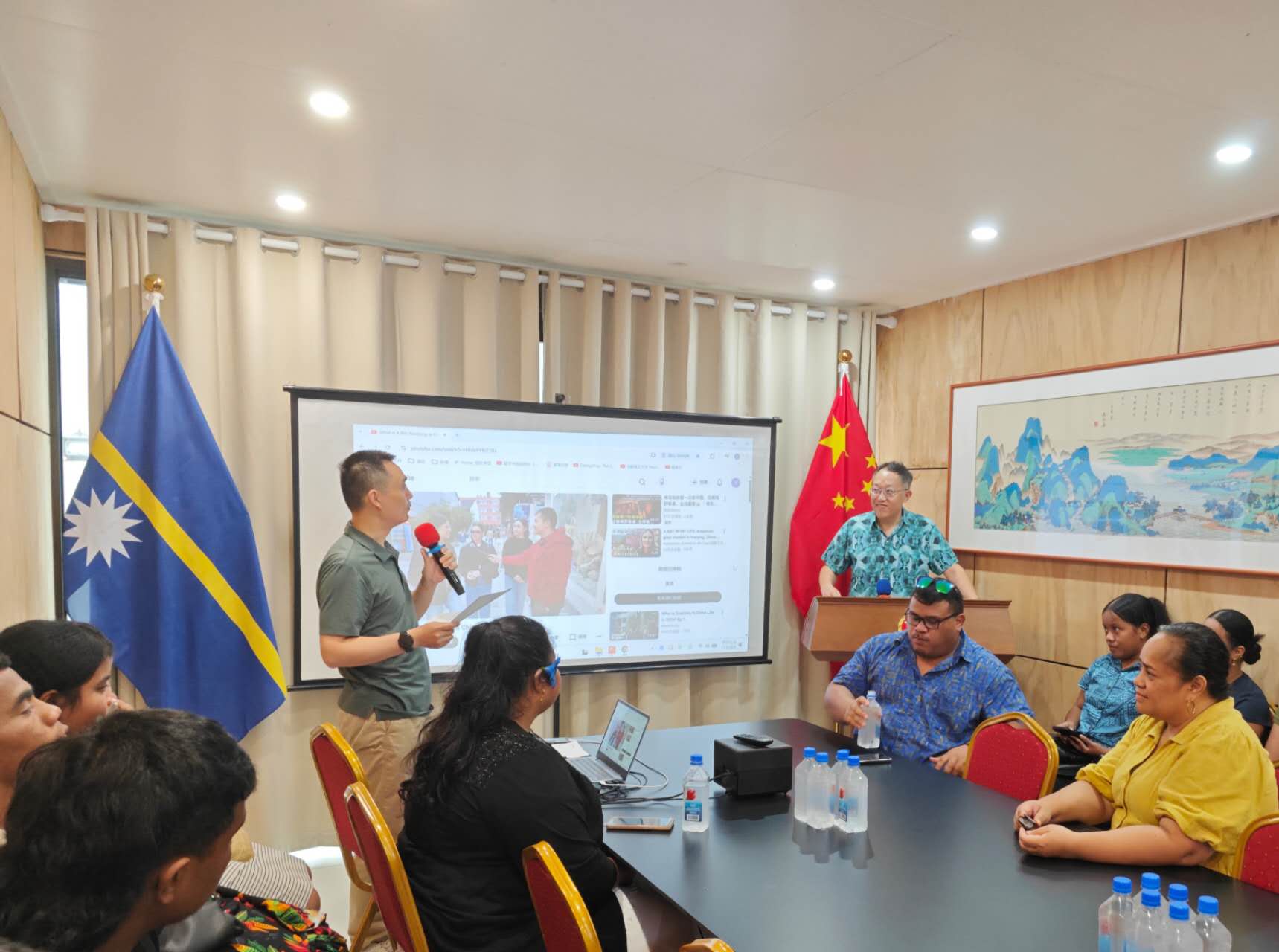 2月11日,中国驻瑙鲁使馆首次举办“中国政府奖学金”专题推介会。瑙鲁青年学生、南太平洋大学瑙鲁校区代表等约60人参加活动,王旭光临时代办出席活动并致辞。