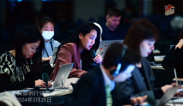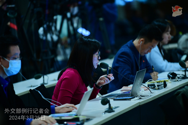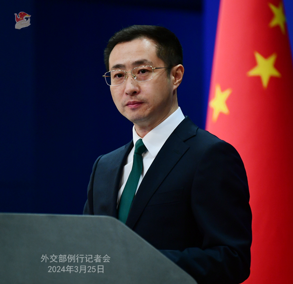 《中国日报》记者:据报道,3月22日,俄罗斯和中国在联合国安理会共同否决了美国起草的有关巴以局势决议草案,阿尔及利亚也投了反对票。中方能否介绍有关立场?