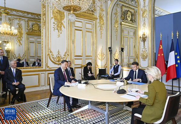 马克龙表示,今年是法中建交60周年,法中合作取得许多重要成果。很高兴在习近平主席对法国进行第三次国事访问期间举行法中欧领导人三方会晤。这既是以往几次法中欧领导人三方会晤的延续,也是应对各种国际挑战的紧迫需要。当前世界面临重大挑战,国际局势处于关键转折点,法国和欧盟比以往任何时候都更加需要同中国加强合作,这事关欧洲的未来。法方希望同中方加强对话合作,增进法中、欧中之间的互信和友谊。欧方不认同“脱钩”,欢迎中国企业来欧投资合作,希望同中方加强合作,共同维护欧洲价值链供应链安全稳定。法方希望同中方紧密合作,应对气候变化、海洋多样性等全球性挑战。