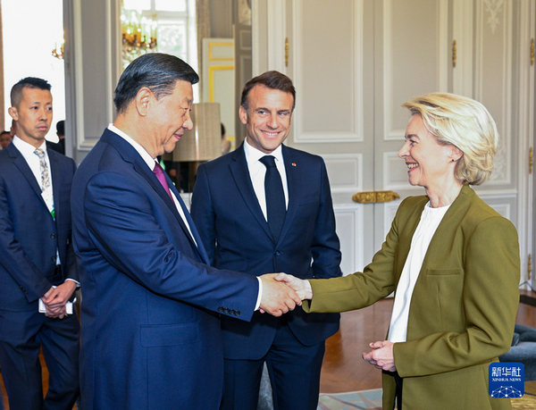 当地时间2024年5月6日上午,国家主席习近平应邀在巴黎爱丽舍宫同法国总统马克龙、欧盟委员会主席冯德莱恩举行中法欧领导人三方会晤。