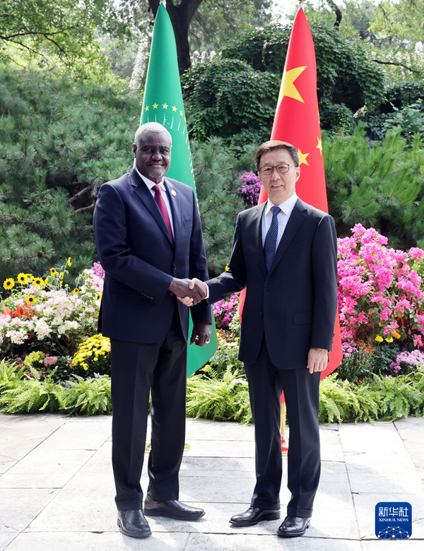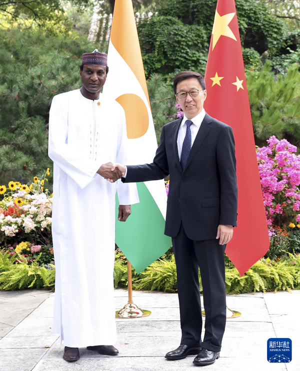 2024年9月3日,国家副主席韩正在钓鱼台国宾馆分别会见来华出席中非合作论坛北京峰会的尼日尔总理泽内、非盟委员会主席法基。