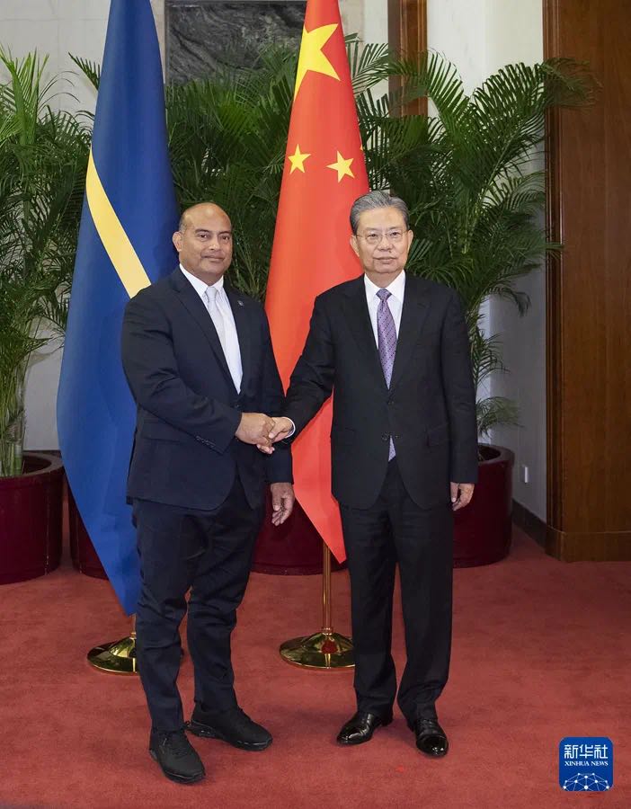 赵乐际表示,昨天,习近平主席同总统先生举行历史性会晤,共同擘画了两国关系发展的新蓝图。中方愿同瑙方一道,落实好两国元首达成的重要共识,巩固政治互信,拓展务实合作,加强人文交流,更好造福两国人民。中国正以中国式现代化全面推进强国建设、民族复兴伟业,将给包括瑙鲁在内的世界各国带来新的发展机遇,欢迎瑙鲁搭乘中国发展快车。中国全国人大愿同瑙鲁议会加强各层级交流,制定完善有利于双边合作的法律文件,分享改革发展、法治建设等方面经验。